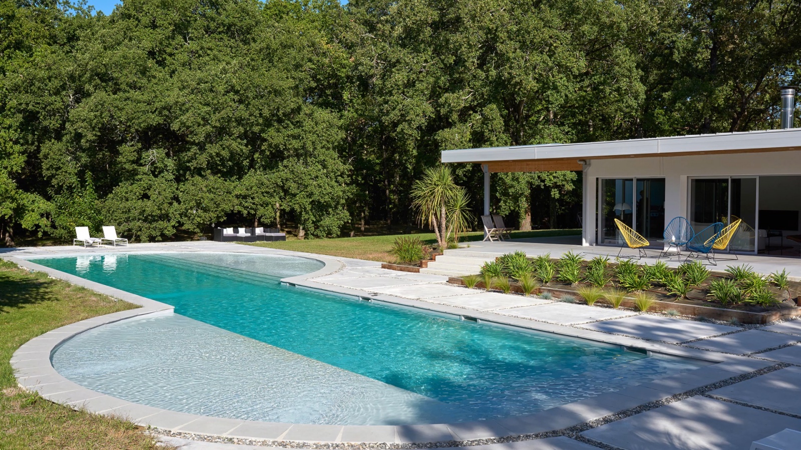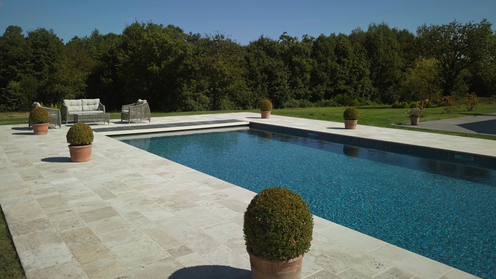 The traditional swimming pool is family-friendly, integrated into the style of your house.